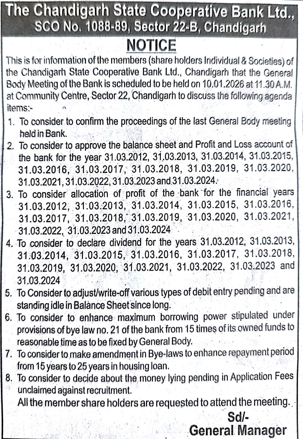 Welcome to The Chandigarh State Cooperative Bank Limited, Chandigarh